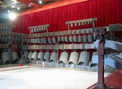 永乐大钟:永乐大钟是明成祖朱棣下令铸造。通高675厘米,直径330厘米,重46500千克。钟身内壁有佛教经