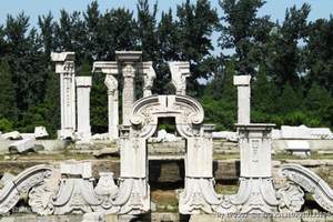 圆明园座落在北京西郊海淀,与颐和园紧相毗邻。它始建于康熙46年(1707年),由圆明、长春、绮春三园组成。占地350公顷(5200余亩),其中水面面积约